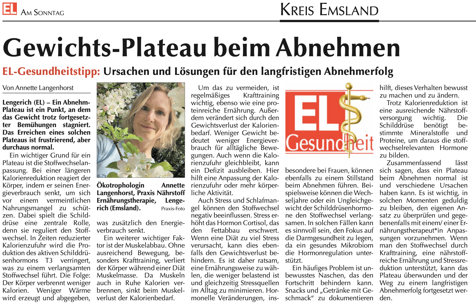 Moin! Ich bin Annette Langenhorst, zertifizierte Ökotrophologin und Schilddrüsenexpertin. Ich biete online oder in meiner Praxis in Lengerich (Emsland) Ernährungstherapie an. Gemeinsam finden wir die Struktur, die du benötigst, um deine Ziele zu erreichen.